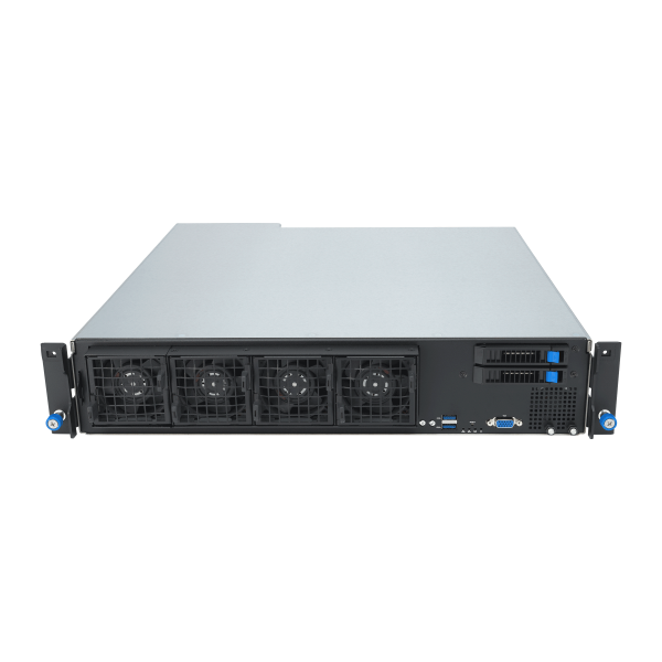 2U Intel single-socket compact edge server with rear I/O access, one FHHL card, two FHFL cards, designed for 0–55°C environments**