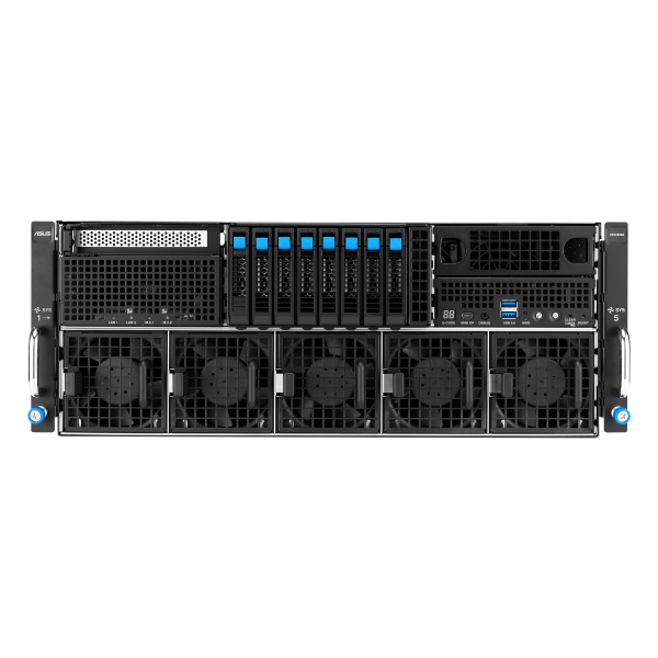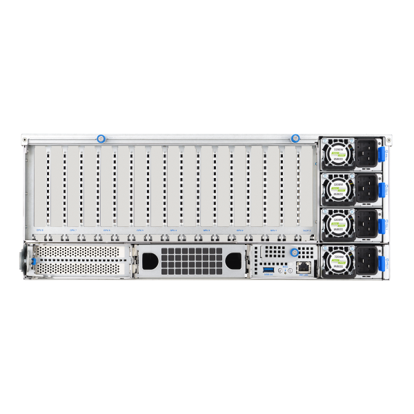 - High-density 4U server: Designed to support up to eight high-end GPUs in dual-slot configurations and supports up to 600 watts each, ideal for handling demanding workloads.