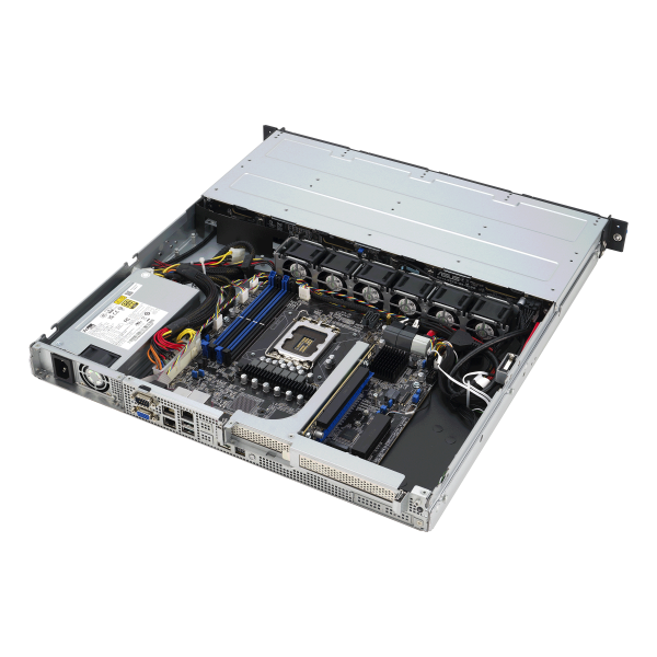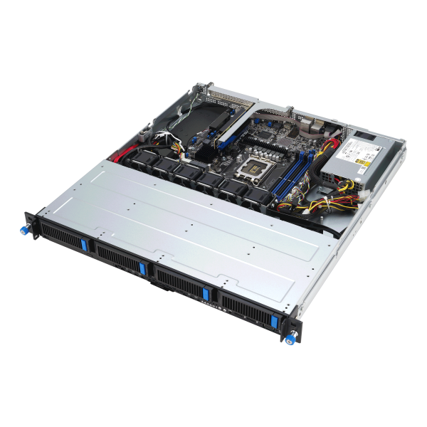 ASUS RS300-E12-PS4 is an Intel® Xeon® E-2400 and Intel®Xeon®6300 1U server with support for four DDR5 ECC UDIMM, four NVMe, one M.2, one PCIe® 5.0 slot and one PCIe 4.0 slot, plus dual LAN , 80 PLUS® Gold power supply, Platform Firmware Resilience (PFR), onboard ASUS ASMB11-iKVM and chassis-intrusion alert.