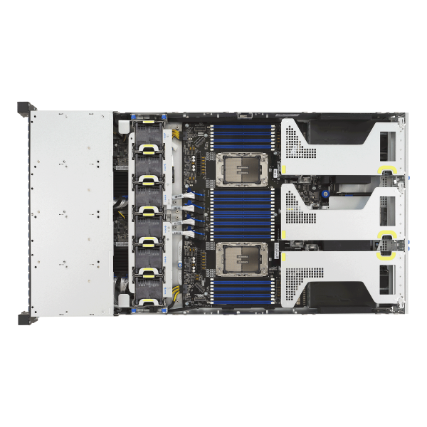 2U dual-socket server powered by Intel® Xeon® 6 Scalable processors that supports up to 32 DIMMs, 24 NVMe, 10 PCIe slots and dual M.2, and ASUS ASMB12-iKVM.