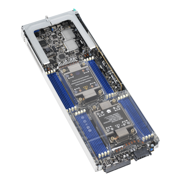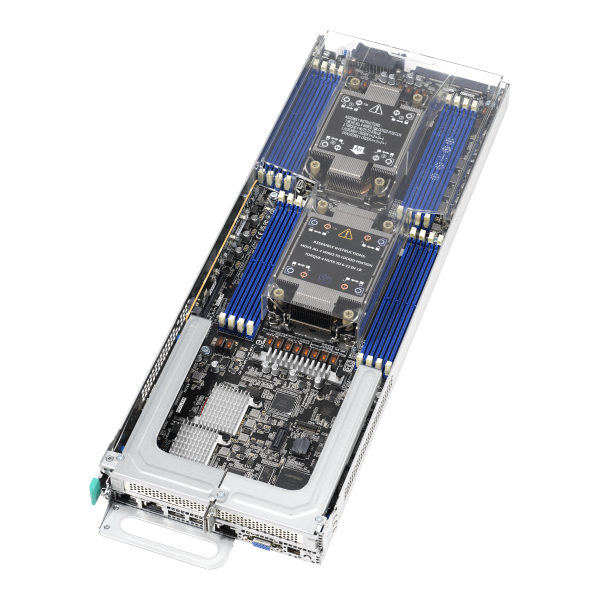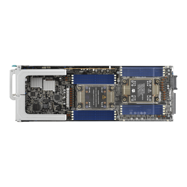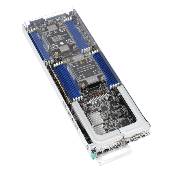 - Scale-up node design: Each node supports for dual processors, 16 DIMMs, 8 NVMe, two PCIe 5.0 x16 slots, two M.2, and two 10G LAN