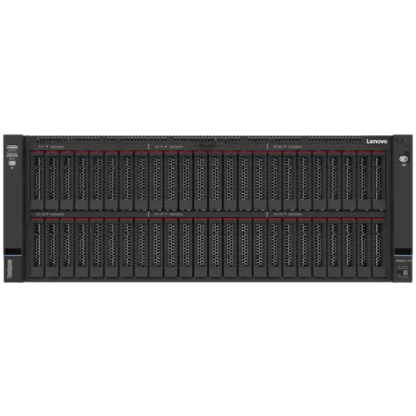 In-memory databases, ERP, CRM, BI platforms, and virtualization are the workloads that drive every enterprise. The ThinkSystem SR860 V4 is designed to be the performance-tuned engine that runs those workloads and propels your enterprise. With up to four Intel® Xeon® 6 processors, massive memory capacity and available expansion for up to four full-size GPUs and up to 56 drives, you can confidently run and scale your enterprise’s critical workloads on the ThinkSystem SR860 V4.