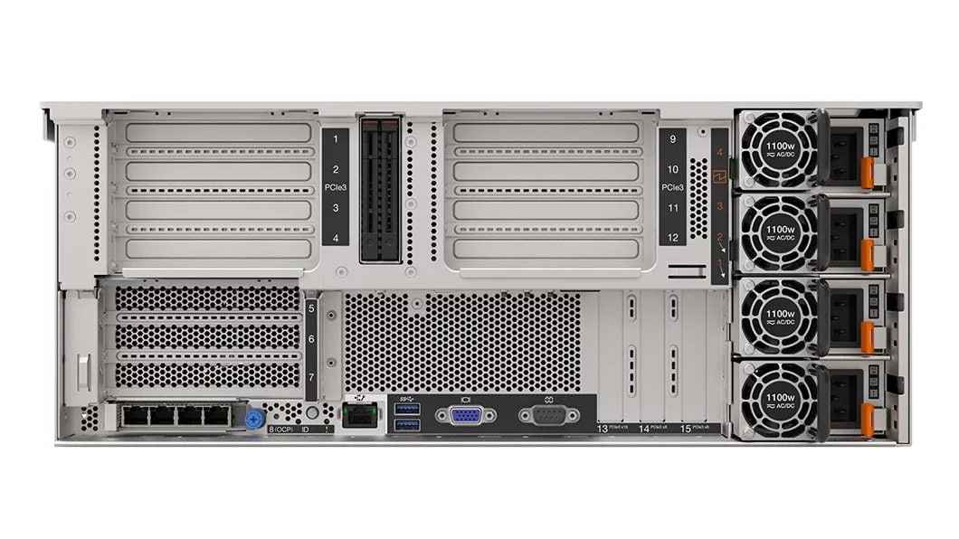 | Expansion | Up to 14x PCIe 3.0expansion slotsFront: VGA, 1x USB 3.1, 1x USB 2.0Rear: 2x USB 3.1, Serial port, VGA port, 1GbE dedicated management port |