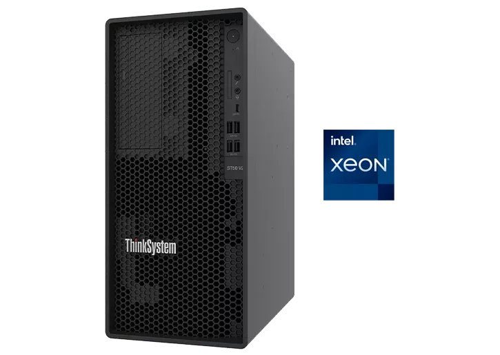 An ideal first server for your growing business, remote/branch office, or retail location, the Lenovo ThinkSystem ST50 V2 enhanced performance increases productivity. The ThinkSystem ST50 V2 boasts the improved operation of the latest Intel® Xeon® E-2300 processors. With a 17% increase in performance the ThinkSystem ST50 V2 offers professional-level capabilities at an entry-level price-point. High value versus a workstation with the benefits of a resilient server.