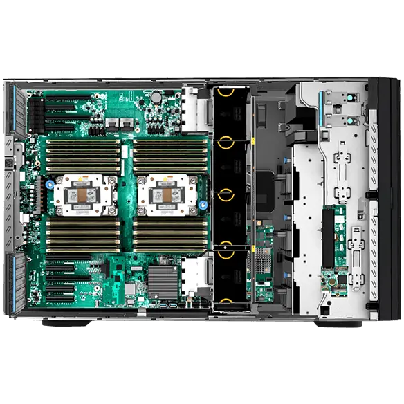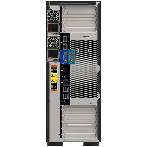 Latest 5th Gen Intel® Xeon® Scalable processorsUp to 4TB TruDDR5 memory in 5600MHzUp to 16x 3.5†HS SAS/SATA (up to 16x optional NVMe SSDs) or Up to 32x 2.5†HS SAS/SATA (up to 24x optional NVMe SSDs)Supports up to 4x double-width or 8x single-width GPU adaptersUp to 9 slots total: 5x PCIe Gen5 slots and 4x PCIe Gen4 slots