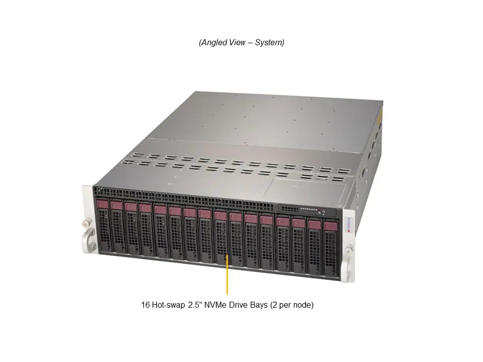 - 2 front fixed 3.5″/2.5″ NVMe/SAS*/SATA* drive bays