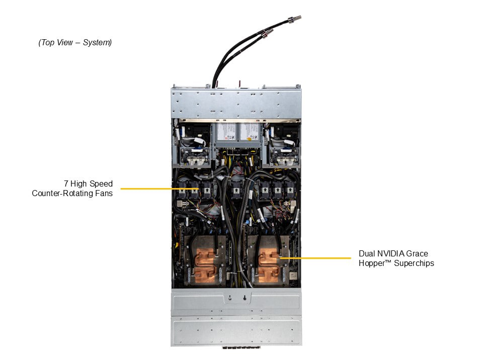 1U 2-Node NVIDIA GH200 Grace Hopper Superchip system with liquid-cooling supporting NVIDIA BlueField-3 or NVIDIA ConnectX-7