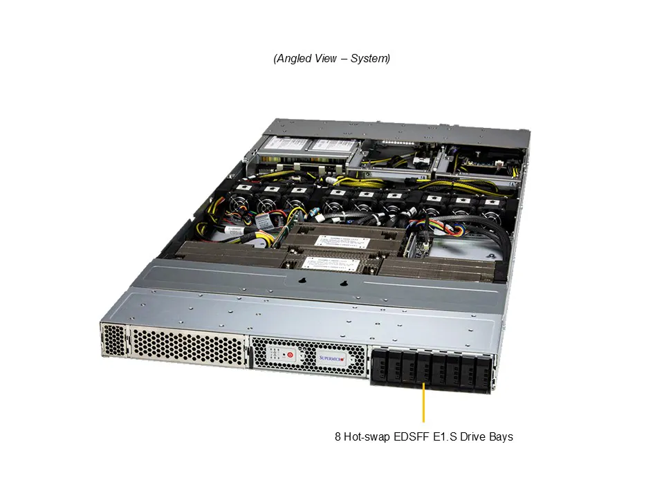 - Up to 8 front hot-swap E1.S NVMe drive bays
