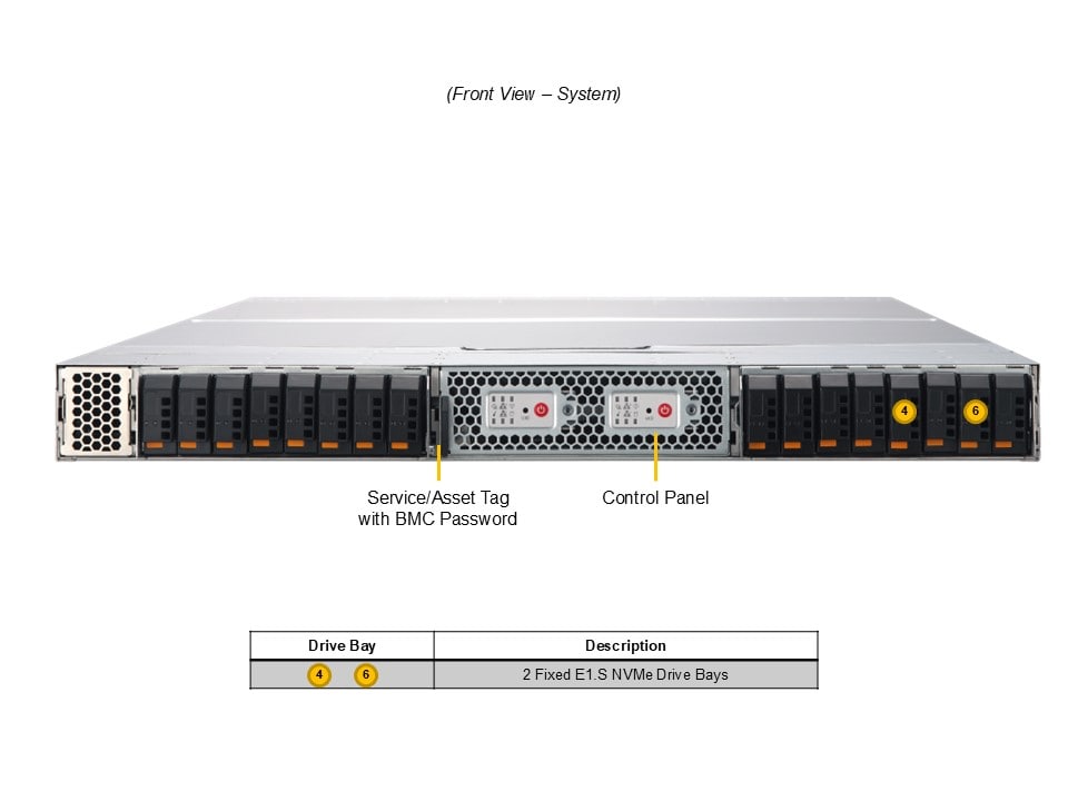 - Default: Total 2 bays2 front fixed E1.S NVMe drive bays