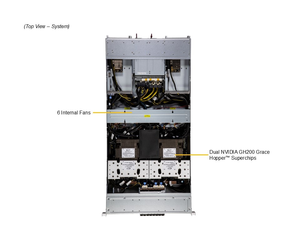 - High density 2U 1-node GPU system with two Integrated NVIDIA H100 GPUs and two 72-core Arm Neoverse V2 CPUsNVIDIA® NVLink® high speed interconnect between both GH200 Super Chips