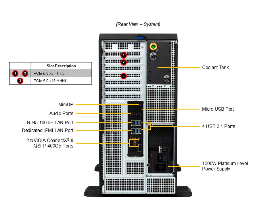 - 2 QSFP28 400 GbE LAN ports (NVIDIA ConnectX®-8 SuperNIC)