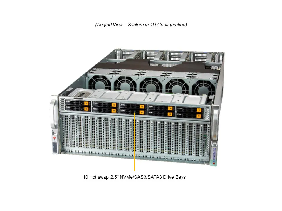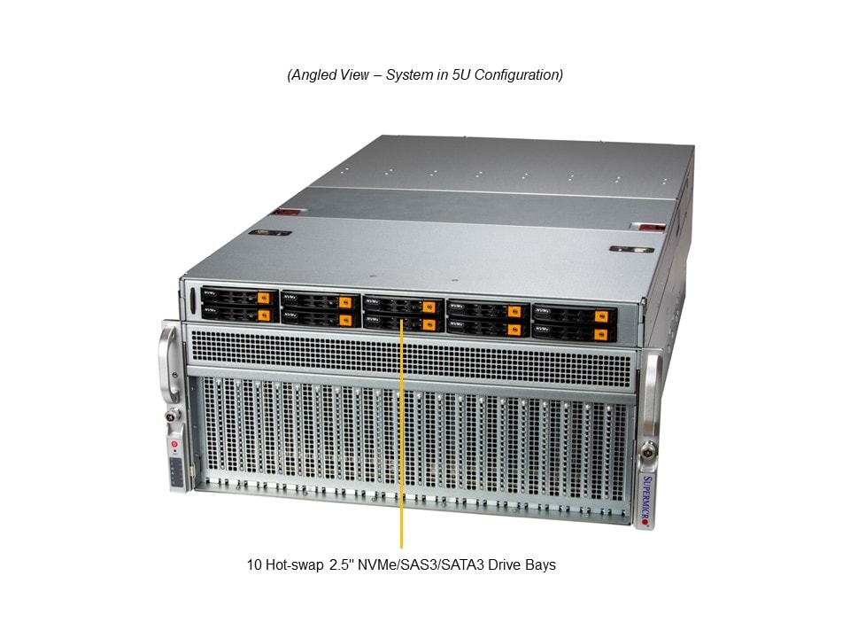 - 10 front hot-swap 2.5″ NVMe/SAS/SATA drive bays