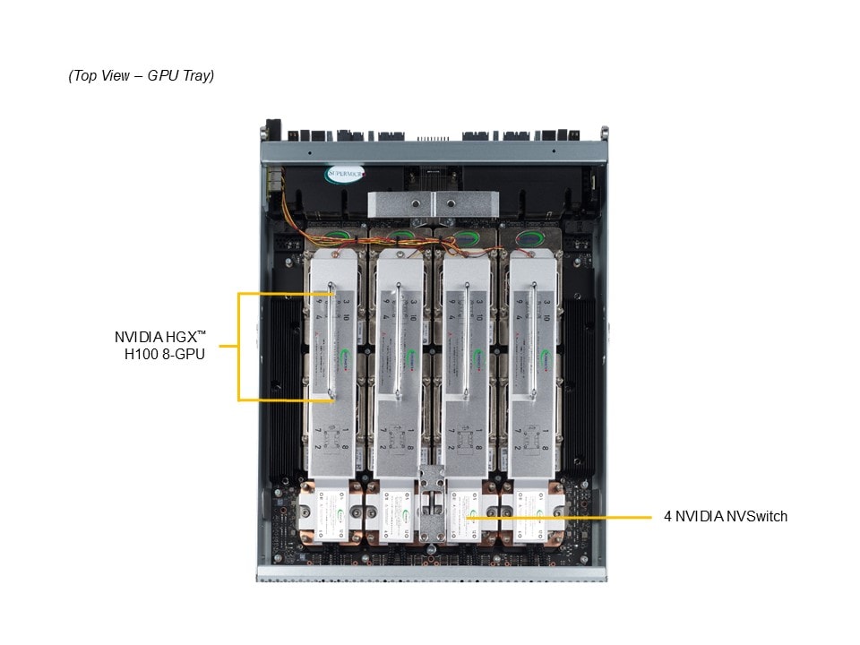 - High density 4U system with NVIDIA® HGX™ H100/H200 8-GPU8x NVMe for NVIDIA GPUDirect Storage8x NIC for NVIDIA GPUDirect RDMA (1:1 GPU Ratio)Highest GPU communication using NVIDIA® NVLink®
