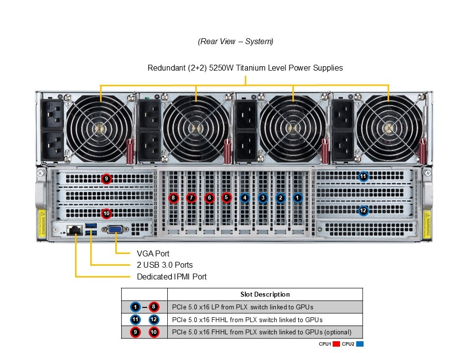 - Total of 4x 5250W (2+2) Redundant Titanium Level power supplies