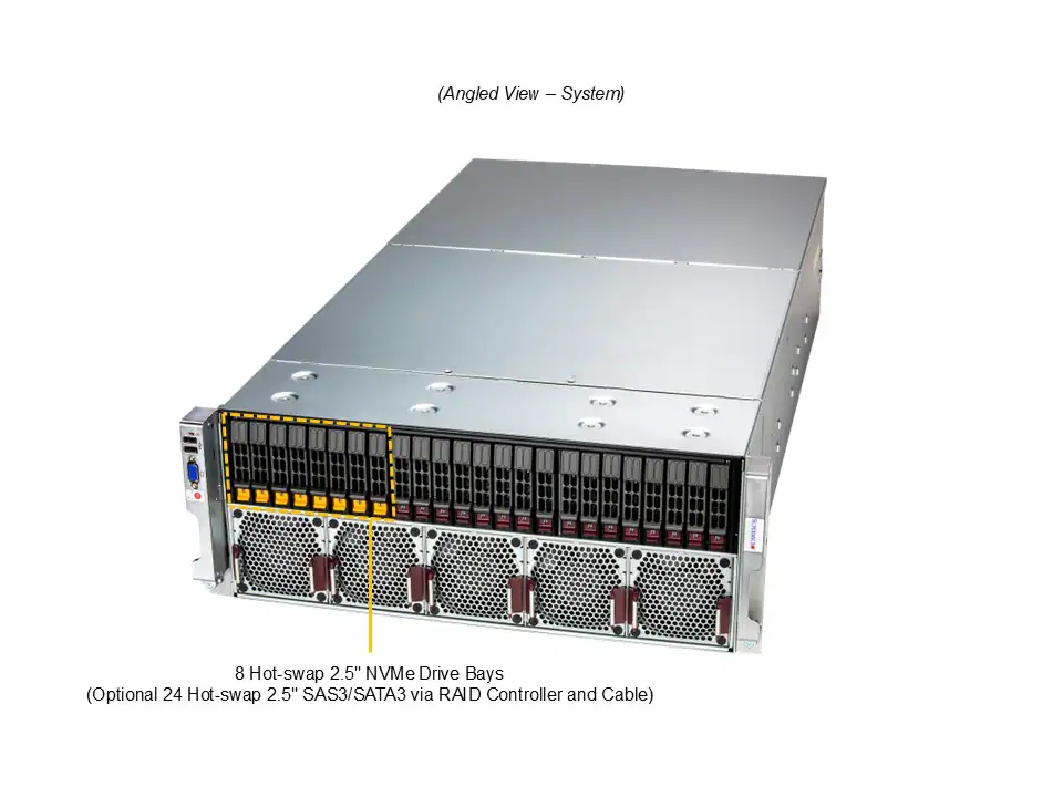 - Default: Total 8 bays8 front fixed 2.5″ NVMe drive bays