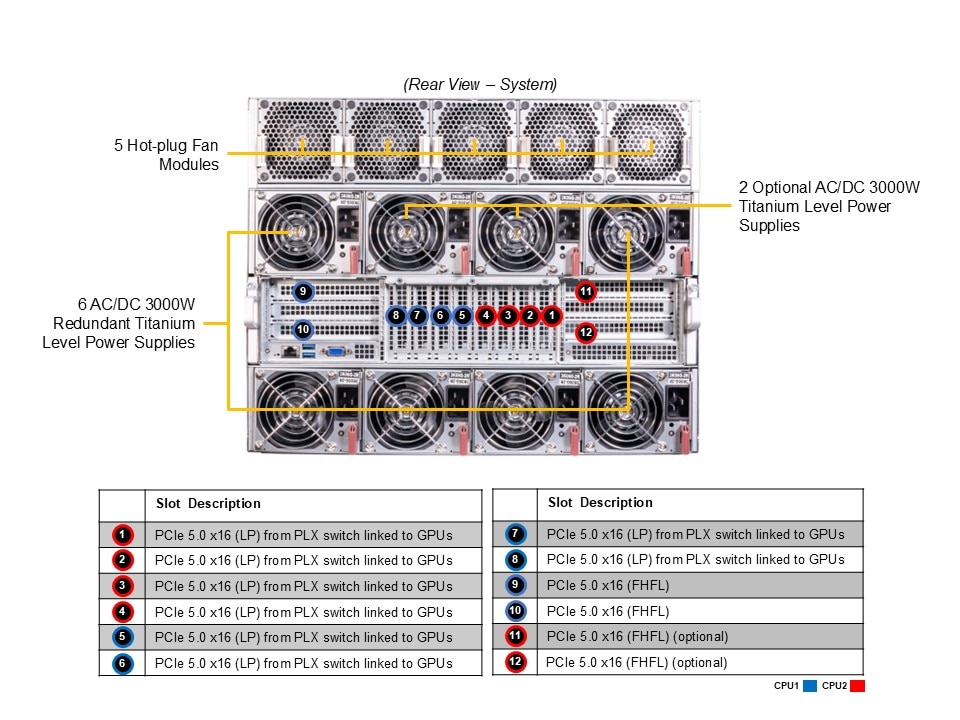 - Up to 8 PCIe 5.0 x16 LP + 4 PCIe 5.0 x16 FHFL slots