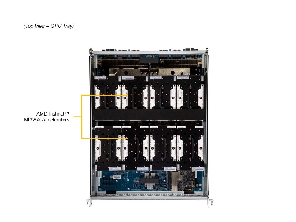 - 8x MI325x or MI350x onboard OAM GPU Accelerator Cards