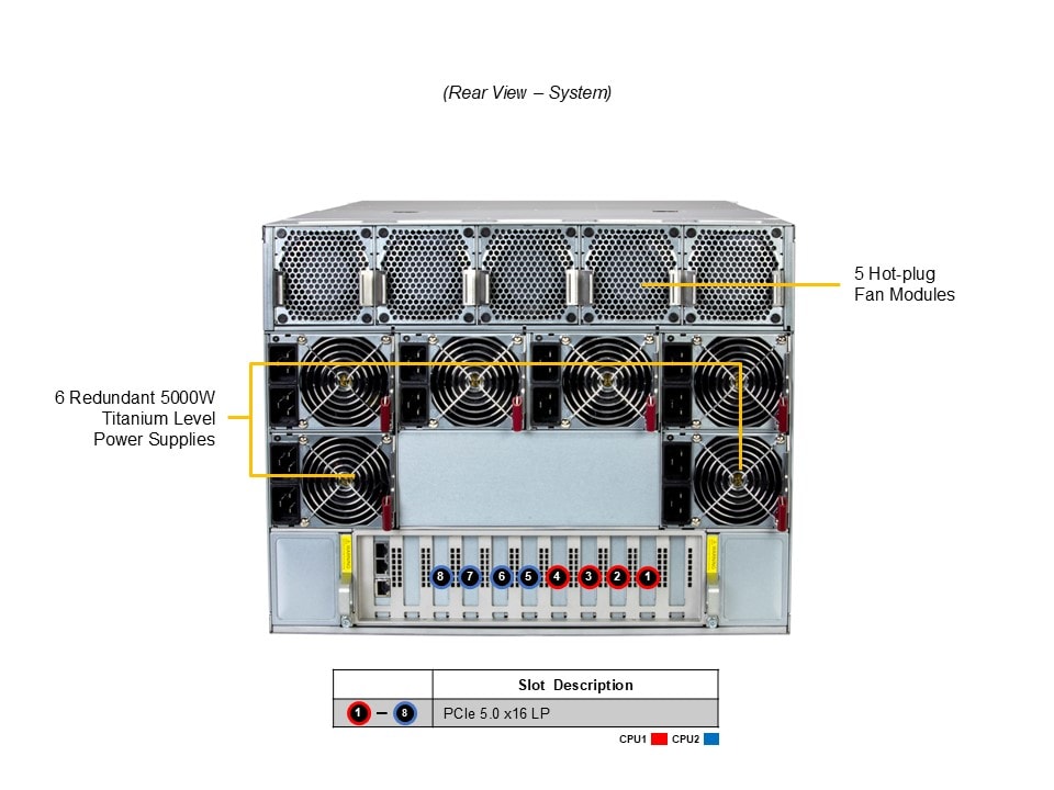 - Total of 8 PCIe 5.0 x16 LP + 2 PCIe 5.0 x16 FHHL slots
