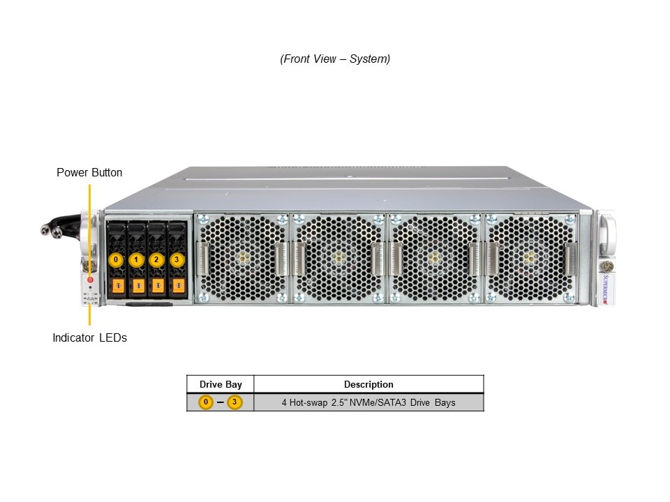 - 4x 2.5″ Hot-swap NVMe/SATA3 drive bays