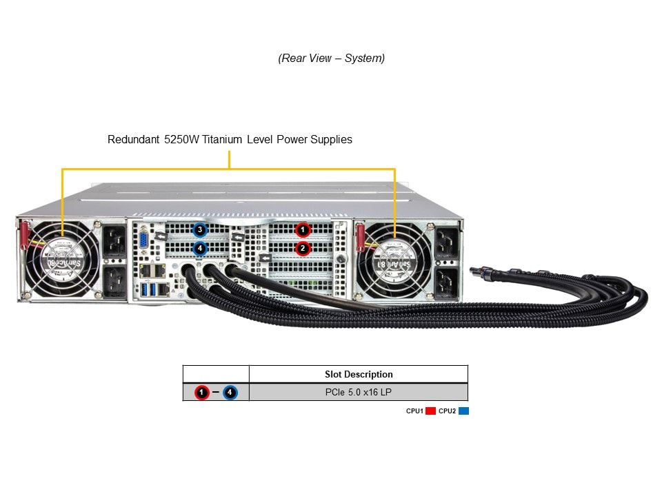 - Direct-To-Chip Liquid Cooling solution4 heavy duty fans with optimal fan speed control