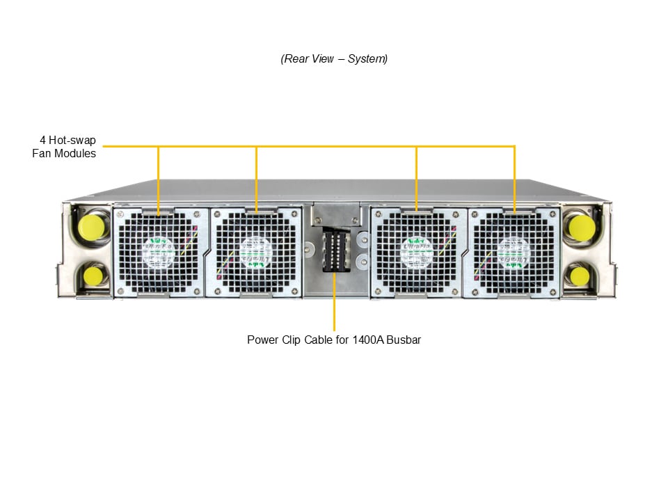 - 21†OCP ORV3 Rack compatible, 1400A busbar with power shelves, DC-SCM Support