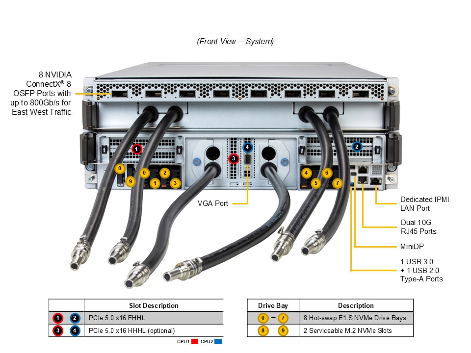 5. 8x Hot-swap E1.S NVMe storage drive bays and 2x M.2 NVMe boot drives
