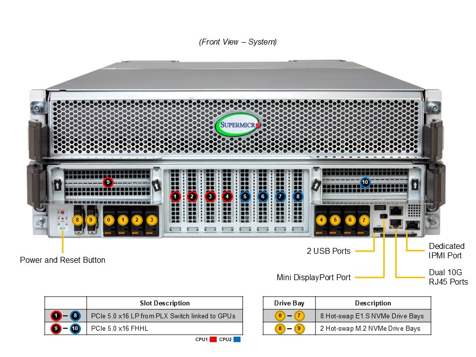- Default2 PCIe 5.0 x16 FHHL slots 8 PCIe 5.0 x16 LP slots