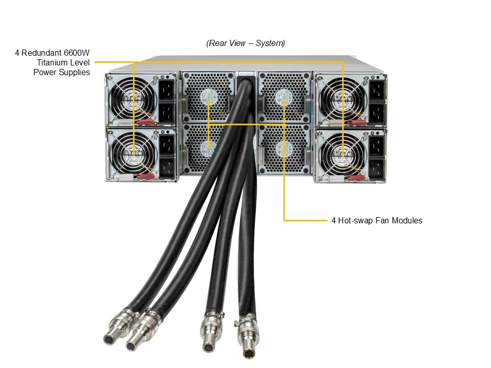 - 4x 6600W 4x 6600W Redundant (2 + 2) Titanium Level (96%) Hot-plug power supplies Dimension (WxHxL)106.5 x 82.1 x 245.3 mm Input5900W: 200-207.9Vac / 50-60Hz 6000W: 208-219.9Vac / 50-60Hz 6300W: 220-229.9Vac / 50-60Hz 6500W: 230-238.9Vac / 50-60Hz 6600W: 239-240Vac / 50-60Hz +12VMax: 130A / Min: 0A (200Vac-207.9Vac)Max: 130A / Min: 0A (208Vac-219.9Vac)Max: 130A / Min: 0A (220Vac-229.9Vac)Max: 130A / Min: 0A (230Vac-238.9Vac)Max: 130A / Min: 0A (239Vac-240Vac) 12V SBMax: 4A / Min: 0A Output TypeBackplanes (gold finger) Certification Titanium Level [ Test Report ]