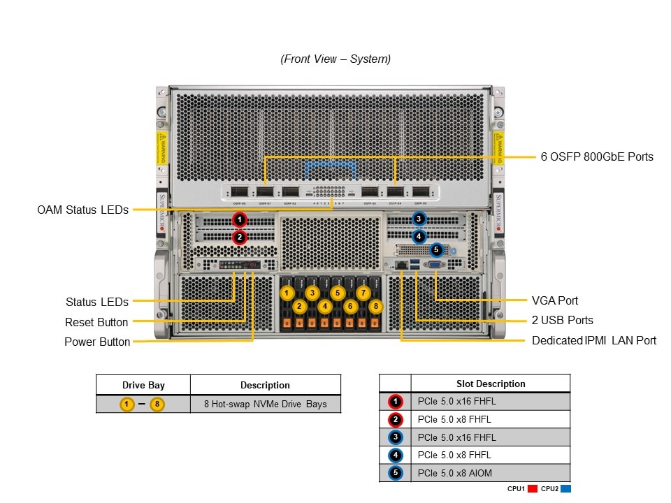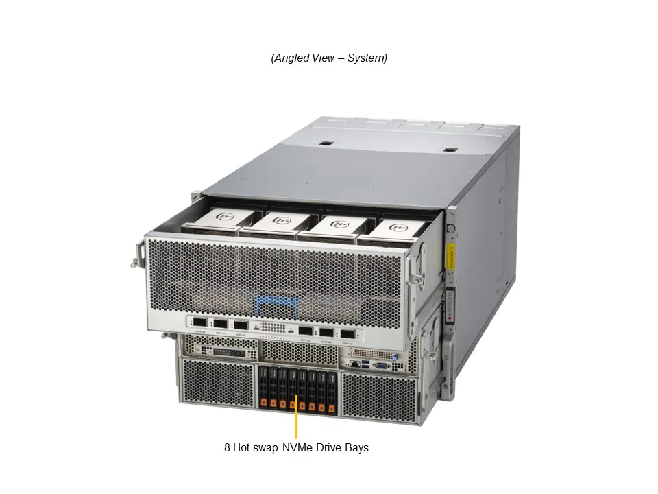 - 8 front hot-swap 2.5″ PCIe 5.0 NVMe drive bays