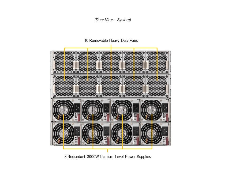 - 8x 3000W 8x 3000W Redundant Titanium Level (96%) power supplies Dimension (WxHxL)106.5 x 82.4 x 203.5 mm Input2880W: 200-207Vac 2880W: 200-207Vac / 50-60Hz 3000W: 207.1-240Vac 3000W: 240Vdc 3000W: 207.1-240Vac / 50-60Hz 3000W: 240Vdc / 50-60Hz +12VMax: 91.66A / Min: 0A (Vdc-240Vdc)Max: 91.66A / Min: 0A (200Vac-240Vac) 12V SBMax: 4A / Min: 0A Output TypeBackplanes (gold finger)