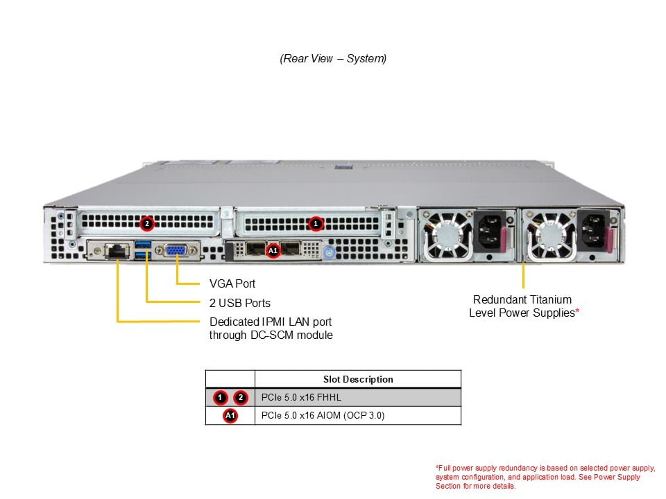 • Default2 PCIe 5.0 x16 FHHL slots 1 PCIe 5.0 x16 AIOM slot (OCP 3.0 compatible)