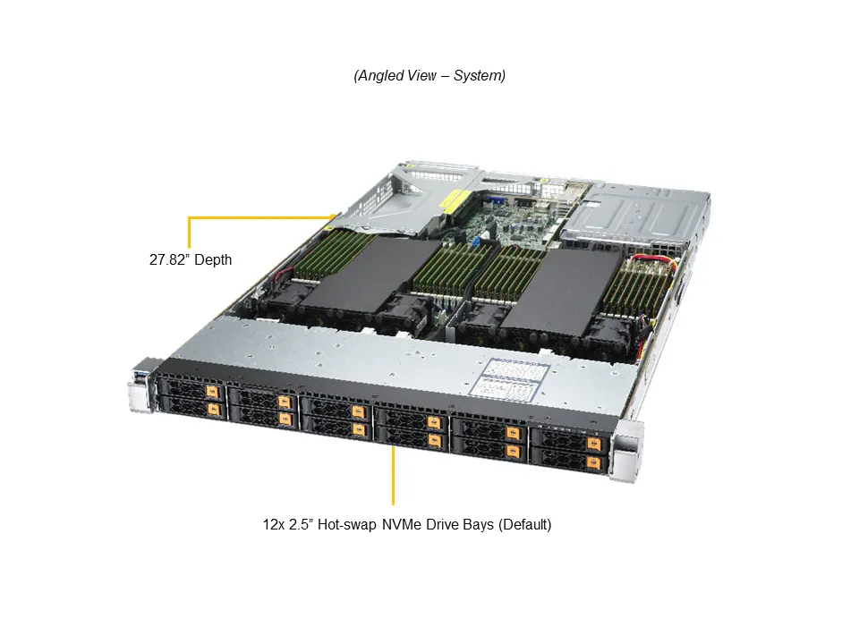 • 12 front hot-swap 2.5″ NVMe drive bays