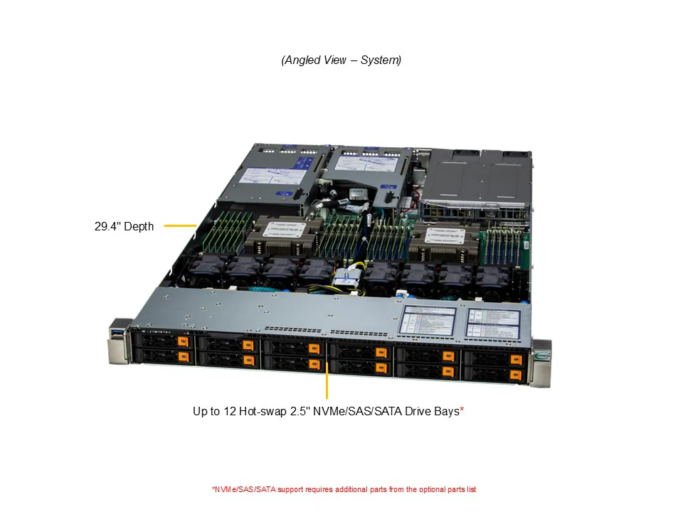 - Dual AMD EPYC™ 9004/9005* Series Processors(*AMD EPYC™ 9005 series drop-in support requires board revision 2.xx)