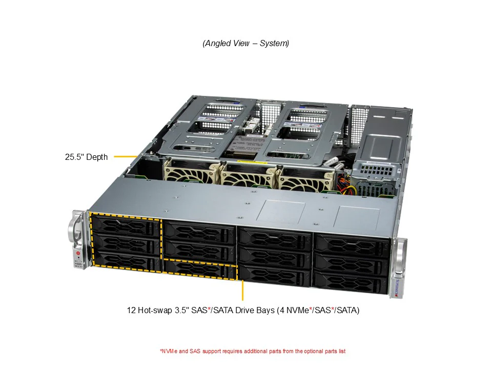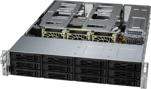 - 12 front hot-swap 3.5″/2.5″ SATA drive bays