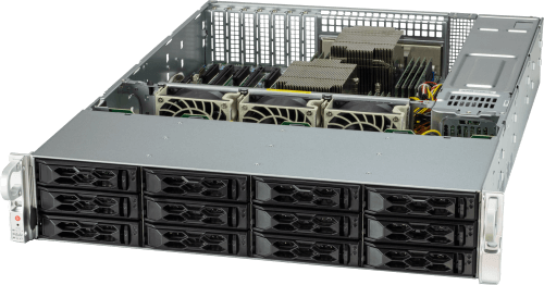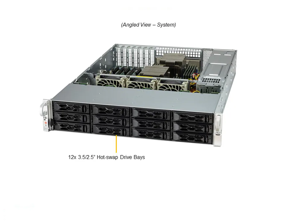 - 12 front hot-swap 2.5″ SAS/SATA drive bays