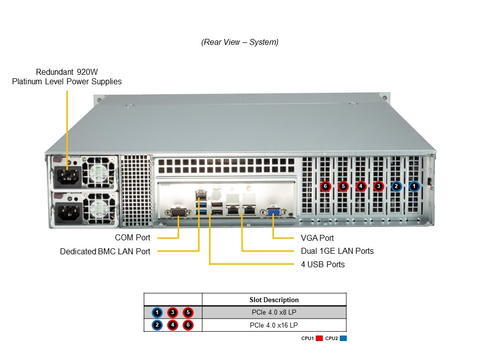 - 1 RJ45 1 GbE Dedicated BMC LAN port