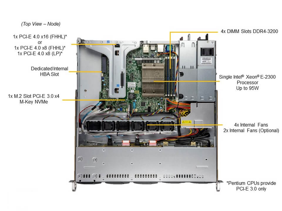 1. Single Socket H5 (LGA-1200) supports Intel® Xeon® E-2300 series, Intel® Pentium® processors