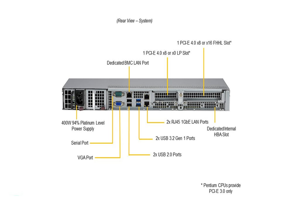 5. Default single Platinum 400W Power Supply; Optional redundant power by adding 1x Power Supply Module