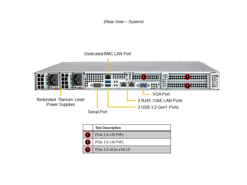 - 1 RJ45 1 GbE Dedicated BMC LAN port (IPMI shared on LAN port 1)