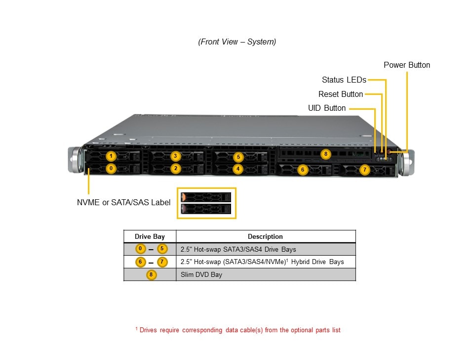 - (*NVMe/SAS/SATA support may require additional storage controller and/or cables)