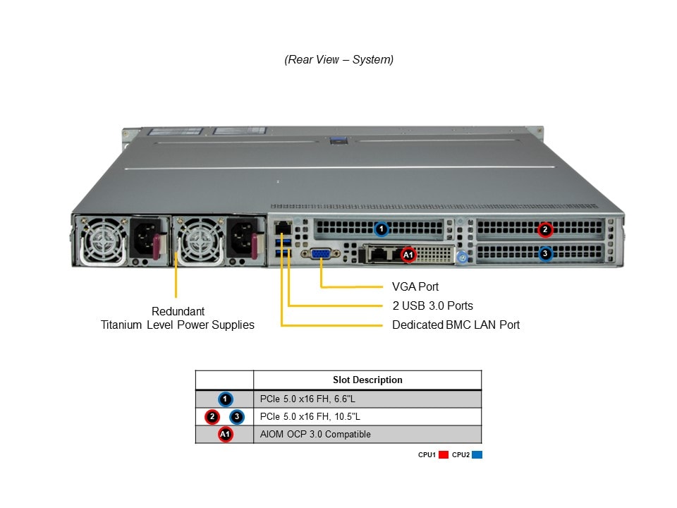 - Default1 PCIe 5.0 x16 FHHL slot 2 PCIe 5.0 x16 FH/10.5″L slots 1 PCIe 5.0 x16 AIOM slot (OCP 3.0 compatible)