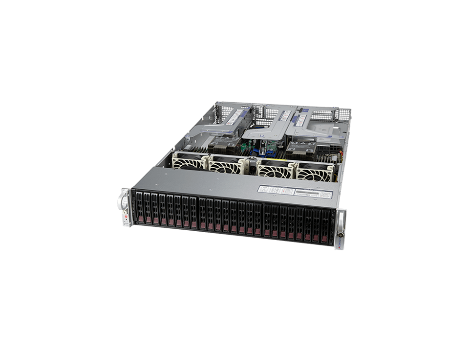- 22 front hot-swap 2.5″ NVMe/SAS*/SATA drive bays