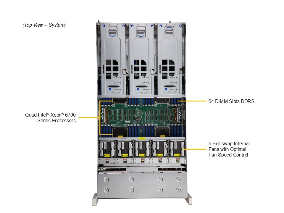 1. Quad E2 (LGA-4710) Intel® Xeon® 6700 series processors with P-cores (4S/8S) up to 350W with air cooling