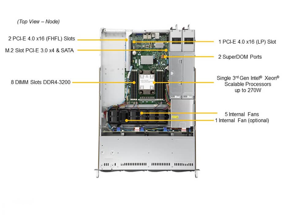 1. Single Socket P+ (LGA-4189) 3rd Gen Intel® Xeon® Scalable processors. Up to 270W TDP.
