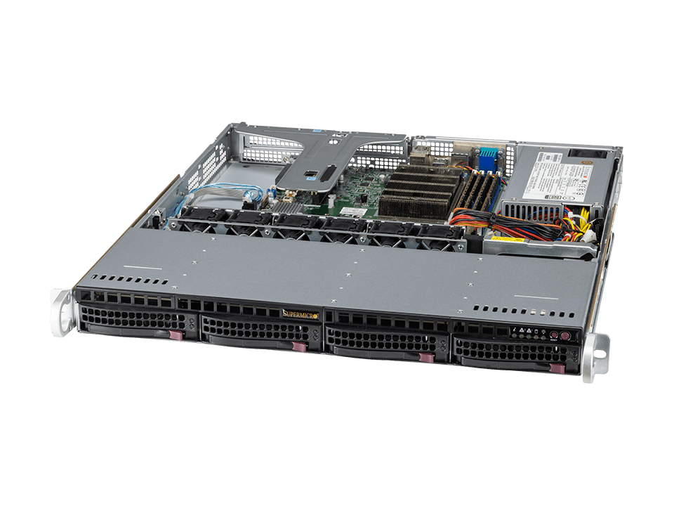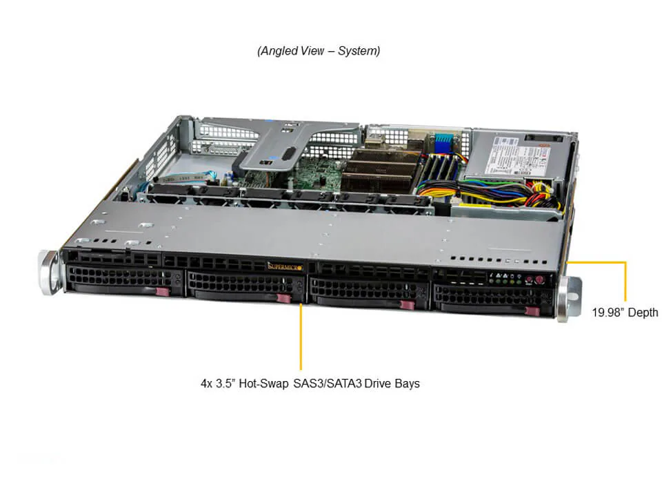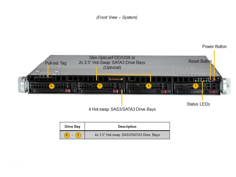 - Default: Total 4 bays4 front hot-swap 3.5″ SATA drive bays