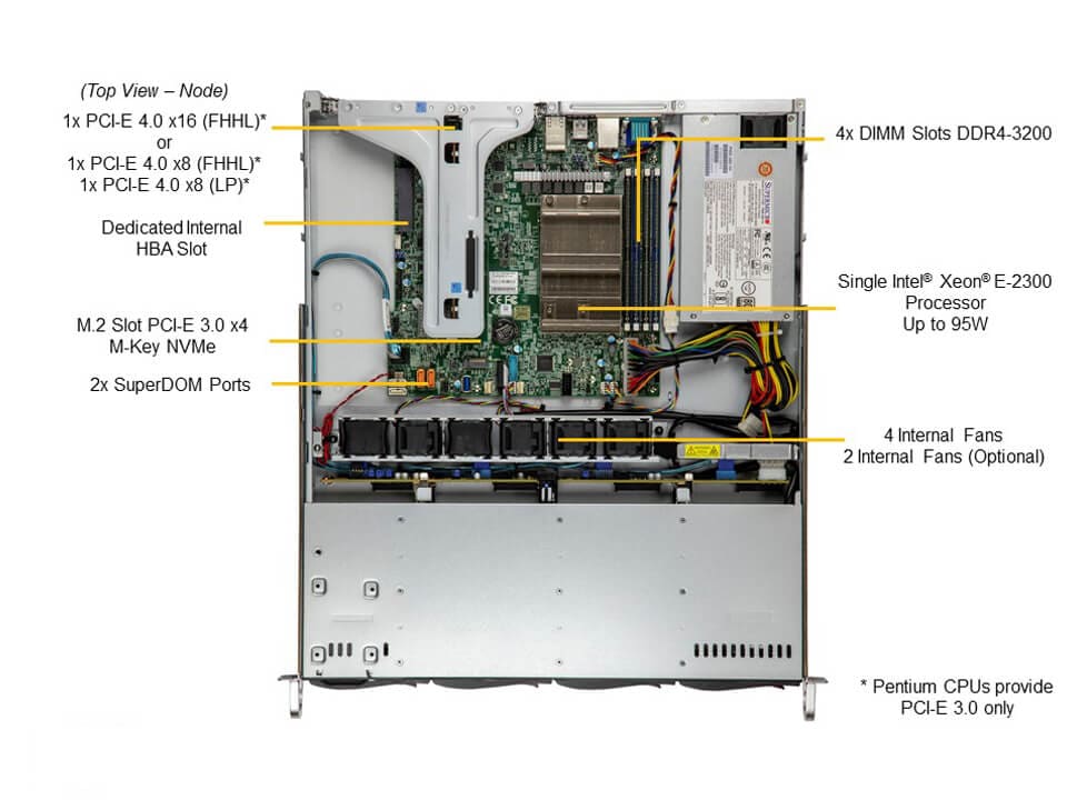- Supports up to 95W TDP CPUs (Air Cooled)