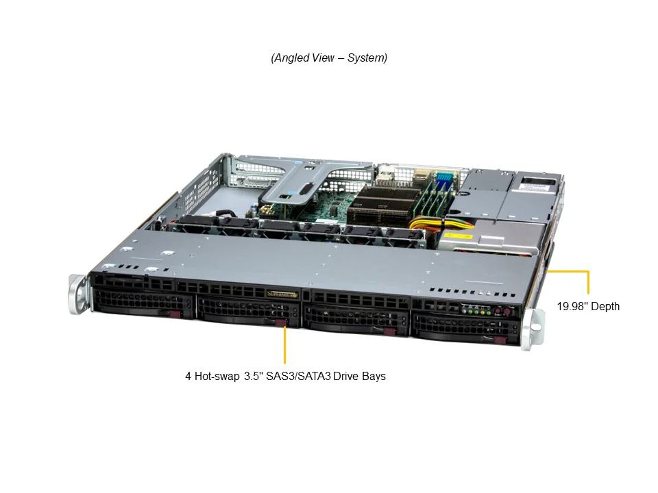 - 4 front hot-swap 3.5″ SAS*/SATA drive bays