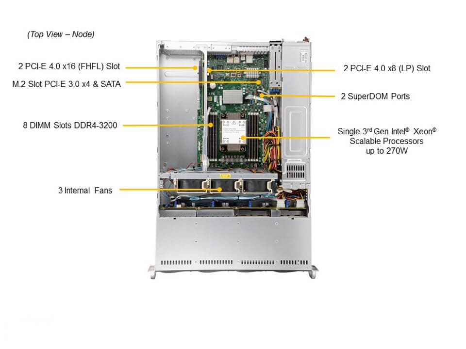 - Supports up to 270W TDP CPUs (Air Cooled)