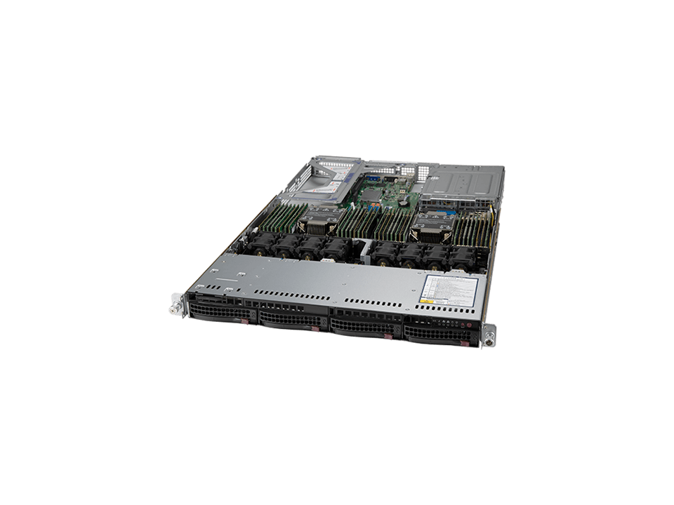 - 4 front hot-swap 2.5″ NVMe*/SAS*/SATA drive bays