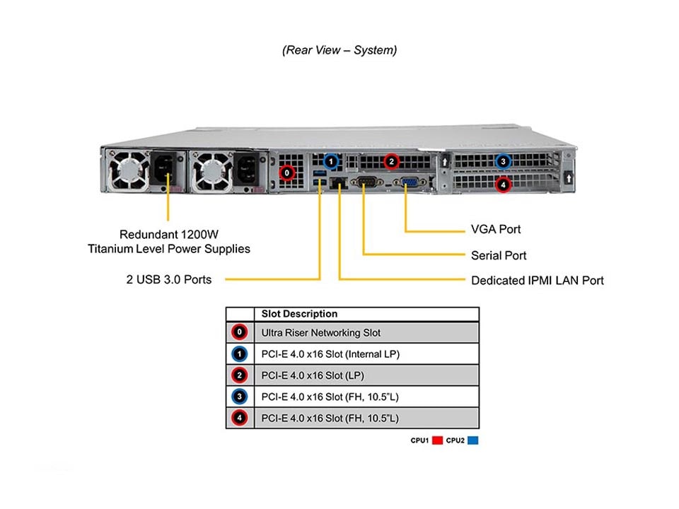 - Default1 PCIe 4.0 x16 (in x16) LP slot 1 PCIe 4.0 x16 (in x16) LP slot 2 PCIe 4.0 x16 (in x16) FH/10.5″L slots